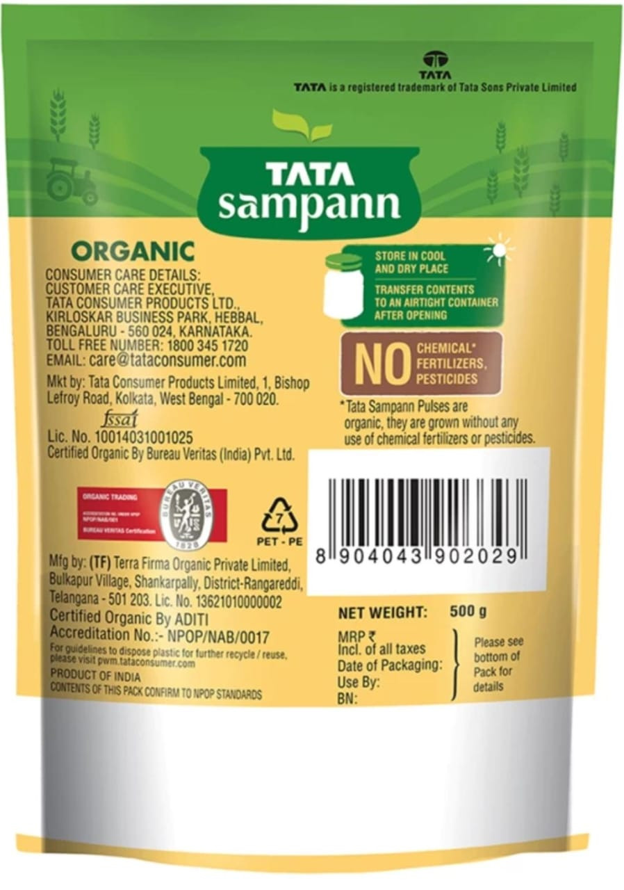 ORGANIC: Tata Sampann Organic Pulses are sourced from certified organic farms where no chemical fertilizers or pesticides are used. PRODUCE OF ORGANIC FARMING : Tata Sampann Organic Pulses are produced and processed as per NPOP standard of India and NOP UNPOLISHED: It does not undergo any artificial polishing with water, oil or leather thereby retaining its goodness and wholesomeness. STRINGENT QUALITY CHECK: Ensures that the grains of dal are uniform in size and colour. So, whenever you are in the mood to cook something easy and delicious, dive into the scrumptious taste of Tata Sampann pulses, and enjoy a delicious meal! CHEF RECOMMENDED: Recommended by Chef Sanjeev Kapoor and Chef Ranveer Brar. Explore Tata Sampann Organic Pulses range -Toor Dal, Masoor Dal, Chana Dal, Urad Whole, Chana Dal, Moong Dal, Urad Dal, Moong Dal, Rajma (Red), Brown Chana, Moong Chilka and Kabuli Chana. |